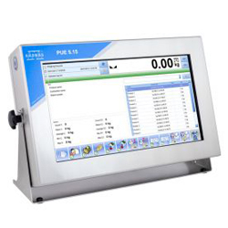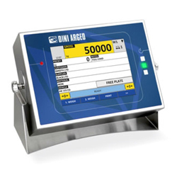 Weight indicator with 8 inches touch screen display. New IP68 housing with adjustable viewing angle brackets. Integrated LED control light on the front panel and Integrated Ethernet port as standard. The 3590EGT8 indicator, in addition to the standard weighing programs that are available also has a development environment for specific applications with an integrated debugger and programming tools for the PC. Thanks to the completely customizable screen layouts it can display all the weighing data, database records and free texts, this considerably simplifies the user operations. CEM approvable (OIML R76/EN 45501).